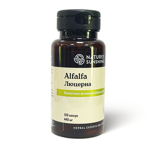 Люцерна посевная (Medicago sativa) - бобовое растение, богато белком, витаминами, фитоэстрогенами, хлорофиллом. Способствует заживлению эрозий, язв, открытых ран, помогает в борьбе с инфекцией, повышает эластичность артерий, снижает уровень холестерина, триглицеридов и сахара в крови, повышает содержание гемоглобина, предупреждает развитие атеросклероза и осложнений диабета. Показана при болезнях желудочно-кишечного тракта, печени, хроническом и остром цистите, простатите, артрите, ревматизме. Люцерна повышает лактацию у кормящих матерей, помогает восстановить нормальный уровень эстрогена, необходима женщинам в период менопаузы и для профилактики рака груди.