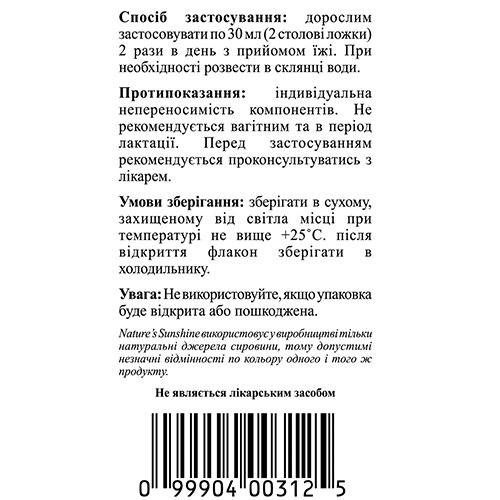 Применение: взрослым принимать по 30 мл (2 столовые ложки) 2 раза в день во время еды. Можно растворить в стакане воды.
