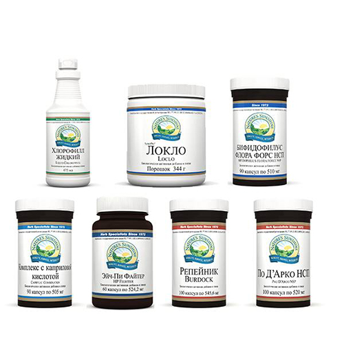 Бифидофилус Флора Форс НСП по 1 капсуле 2 раза в день Репейник по 1 капсуле 2 раза в день с основными приемами пищи (при желчекаменной болезни по ½ капсулы 2 раза в день); Хлорофилл жидкий по 1 ч. л. в стакане теплой воды 2 раза в день; Локло по 1 ст. ложке 1 раз в день, разводя в стакане воды, в течение часа выпить как минимум 1-2 стакана жидкости. Начинать можно с меньшей дозы. |