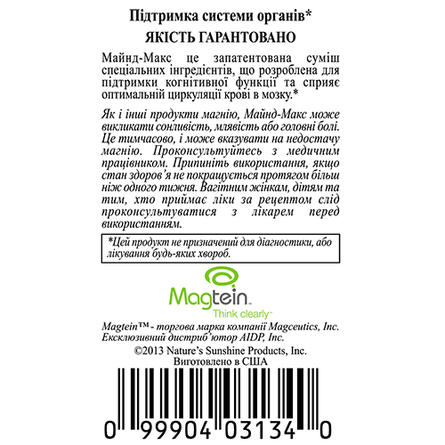 БАД к пище Майнд-Макс является дополнительным источником магния.