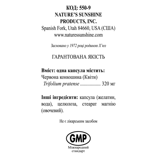 Состав - 1 капсула: цветы красного клевера (Trifolium рratense) - 320 мг.