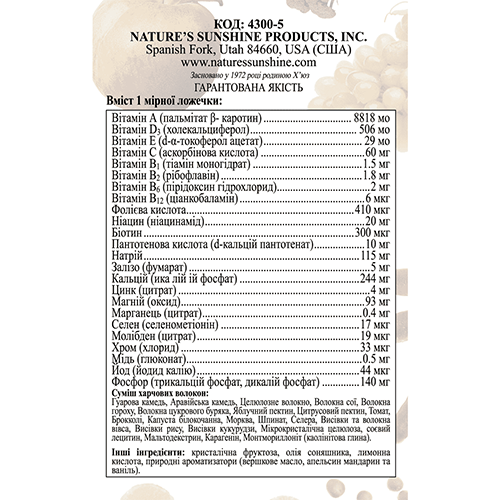 Пищевые волокна необходимы для нормальной работы желудочно-кишечного тракта и обеспечения усвоения витаминов и биоэлементов, входящих в состав комплекса. В составе продукта находится клетчатка, которая содержит антиоксиданты и другие биологически активные вещества.