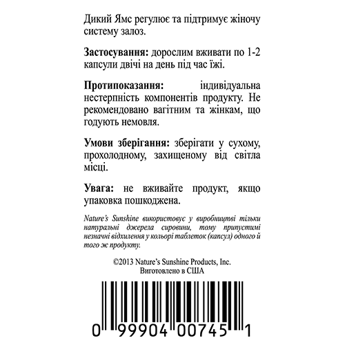 БАД к пище Дикий Ямс НСП является дополнительным источником стероидных сапонинов.